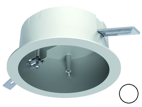 Einbautopf für Aufbaupunktauslass, ausgelegt für Deckenstärken bis 30 mm, Mindesteinbauhöhe 75 mm, Deckenausschnitt Ø 126 mm, bis 10 kg belastbar, weiß