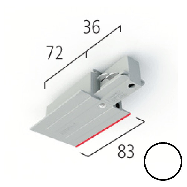 Einspeiser für 3-Phasen Stromschiene, weiß, Schutzleiter links, Deckenauflage, 230V 16A, Zuleitung min. 5 (3) x 1,5 mm² / max. 5 (3) x 2,5 mm²