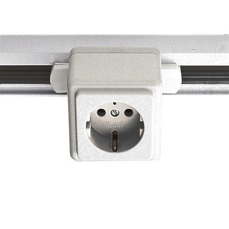 Schienensteckdose für das Hochvolt 3Phasen-Schienen-System, weiß, für den Anschluss von Geräten der Schutzklasse I (System Schuko) bzw. der Schutzklasse II geeignet, inklusive 6,3A Sicherung (träge) in der Schienensteckdose