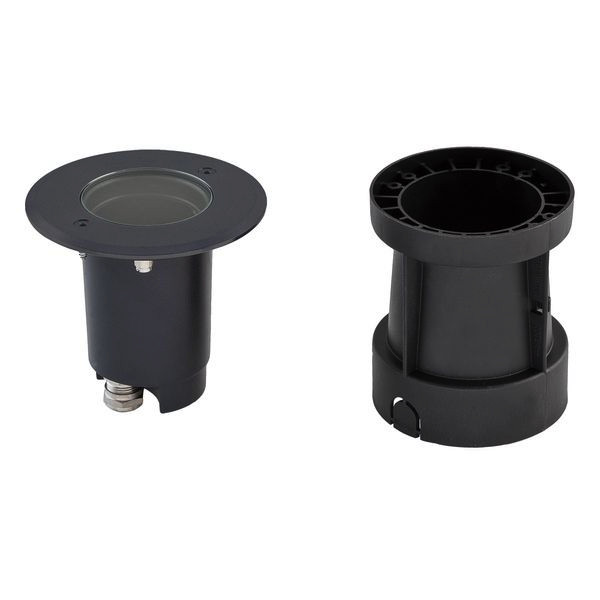 Der Leuchtenkörper ist aus Aluminium, die Abdeckplatte hingegen aus V2A-Edelstahl gefertigt. Die Kabeleinführung erfolgt über die am Boden befindliche Kabelverschraubung, welche für Kabel bis 9mm Durchmesser geeignet ist. Es besteht die Möglichkeit, die Leuchte ohne den im Lieferumfang enthaltenen Kunststoff-Einbautopf zu montieren, in diesem Fall beträgt der Lochausschnitt 96mm während die Einbautiefe unverändert bleibt. Durch die GU10 Hochvoltfassung können unterschiedliche Leuchtmittel bis max. 35W in der Leuchte betrieben werden. Der Schwenkwinkel beträgt 10°. Zusätzlich ist ein mattes Schutzglas im Lieferumfang enthalten.