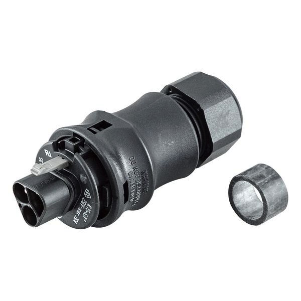 Mit dem IP65-Stecksystem können Verbindungen für Hochvoltanwendungen sowohl im Innen-, als auch Außenbereich schnell und einfach umgesetzt werden. Der Stecker kann an verschiedene Kabel montiert werden, wobei der min.- und max.-Wert für den Kabeldurchmesser beachtet werden müssen.