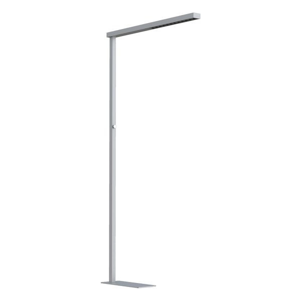 Die flackerfreie LED-Stehleuchte kann für Einzel- und Doppelarbeitsplätze eingesetzt werden. Geschaltet und gedimmt wird die Leuchte über den im Standrohr integrierten Drehdimmer, wobei das up- und downlight immer synchron gedimmt werden. Die Leuchte besteht aus Aluminium, während die Grundplatte für einen sicheren Stand aus Stahl gefertigt ist. Dank der flachen Grundplatte ist eine platzsparende Positionierung an Büromöbeln möglich. Technische Daten: Lichtfarbe up/down: 4000K, Leistung: up/down: 38W/20W, Lumen: up/down: 3600lm/2725lm, Blendwert: UGR kleiner 19, Abstrahlwinkel: up/down: 110°/75°, ta: -20 - 45°C, Zuleitung: 1,50m inkl. Schutzkontaktstecker, Farbe: ähnlich RAL9006.