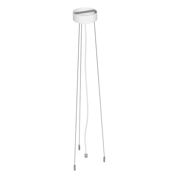 Seilabhängung mit Baldachin für alle Artikel der DROP DOWN Serie: DDT300125, DDT400125, DDT600125, DDT800125, DDD300125, DDD400125, DDD600125 und DDD800125. Der Baldachin hat einen Durchmesser von 150mm und eine Höhe von 40mm. Das Kabel hat eine Länge von 2,50m.