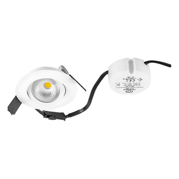 Mit der COB-LED Deckeneinbauleuchte lassen sich vielfältige Anwendungen im Innenbereich, wie z. B. Effektbeleuchtung, Raumbeleuchtung, Akzentuierte Beleuchtung und vieles mehr realisieren. Da außerdem die MM-Kennzeichnung gegeben ist, lässt sich diese sogar im Möbelbau verwenden. Aufgrund der rückseitig angebrachten Dichtung erreicht die Leuchte beim Einbau in geschlossene Decken die Schutzart IP44. Zusätzliche Kosten für Leuchtmittel entfallen bei dieser Leuchte, da die Leistung von einem fest verbauten LED-Chip geliefert wird. Da im Lieferumfang das Netzgerät bereits enthalten ist, fallen auch hierfür keine zusätzlichen Kosten an. Des Weiteren ist das System zusätzlich auch über Phasenabschnitt dimmbar. Der Schwenkwinkel beträgt 25°. Maße Netzgerät (Durchmesser x H): 55 x 23mm. Gehäusefarbe ähnlich RAL9003.