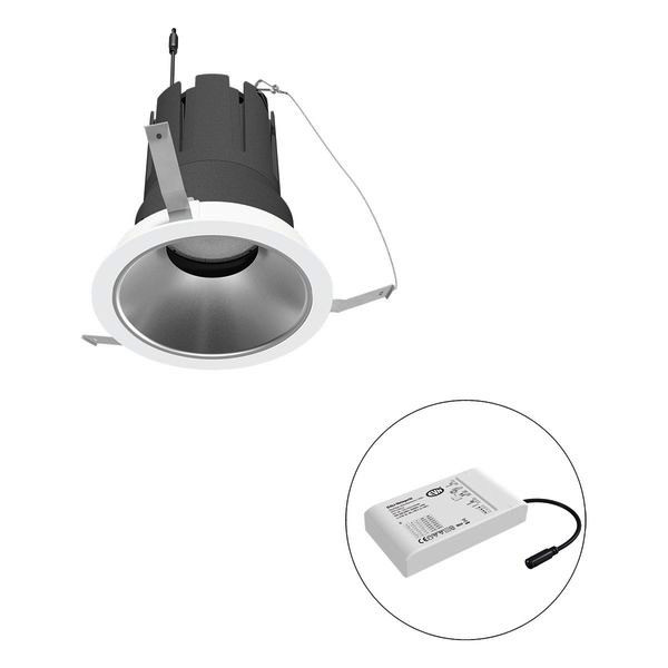 Mit der COB-LED Deckeneinbauleuchte lassen sich vielfältige Anwendungen im Innenbereich, wie z. B. Effektbeleuchtung, Raumbeleuchtung, Akzentuierte Beleuchtung und vieles mehr realisieren. Zusätzliche Kosten für Leuchtmittel entfallen bei dieser Leuchte, da die Leistung von einem fest verbauten LED-Chip geliefert wird. Da im Lieferumfang das Netzgerät bereits enthalten ist, fallen auch hierfür keine zusätzlichen Kosten an. Die Leuchte ist mit diesem Reflektor um 30° schwenkbar. Gehäusefarbe ähnlich RAL9003. Weitere Merkmale: Farbwiedergabeindex CRI92, Bemessungslebensdauer L90B10 bei 50000h.