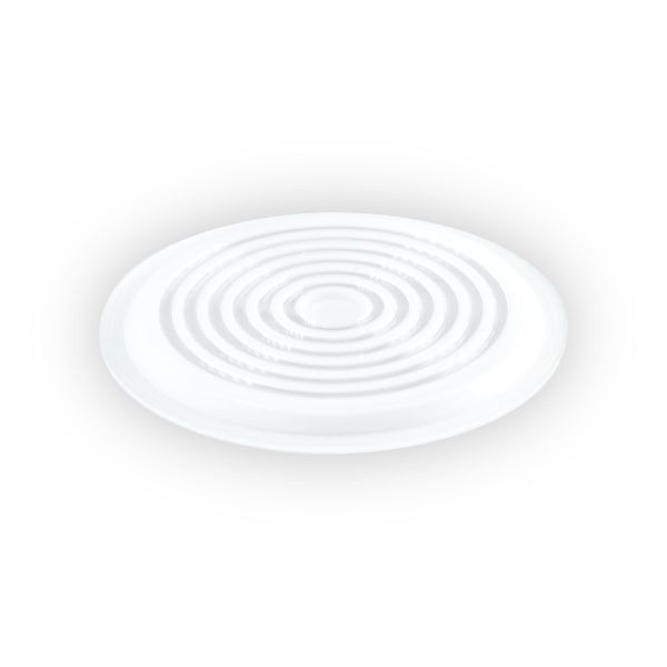 Die Fokuslinse kann für die Hallenleuchte HBM6520025 verwendet werden. Die originale Glasscheibe der Leuchten wird hierbei durch die Fokuslinse ersetzt, wodurch der Ausstrahlwinkel von 120° auf 60° reduziert wird. Somit ist eine fokussiertere Beleuchtung bestimmter Bereiche oder Objekte möglich.