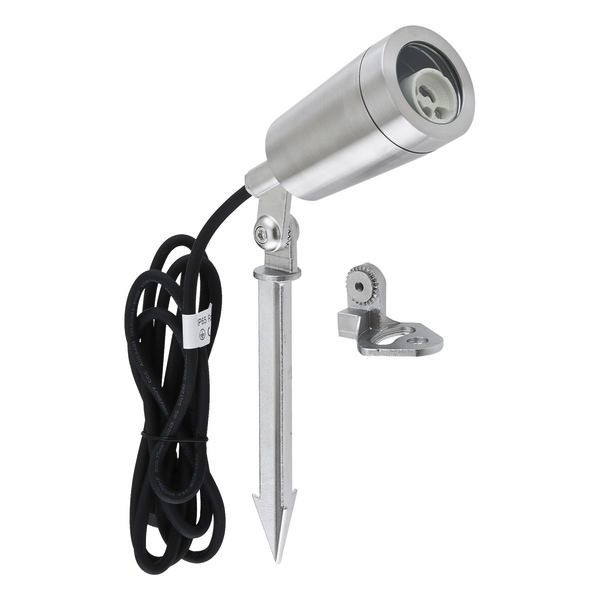 Die V4A-Edelstahl Leuchte kann entweder mittels des montierten Edelstahl-Stativs direkt auf dem Untergrund, oder optional mit dem mitgeliefertem Erdspieß im weichen Untergrund montiert werden. Für unterschiedliche Anforderungen können LED-Leuchtmittel bis max. 6W in den Strahler eingesetzt werden. Am Strahler befindet sich eine 1,7m lange Anschlussleitung mit einen Schutzkontaktstecker. Der Erdspieß hat eine Länge von 195mm.