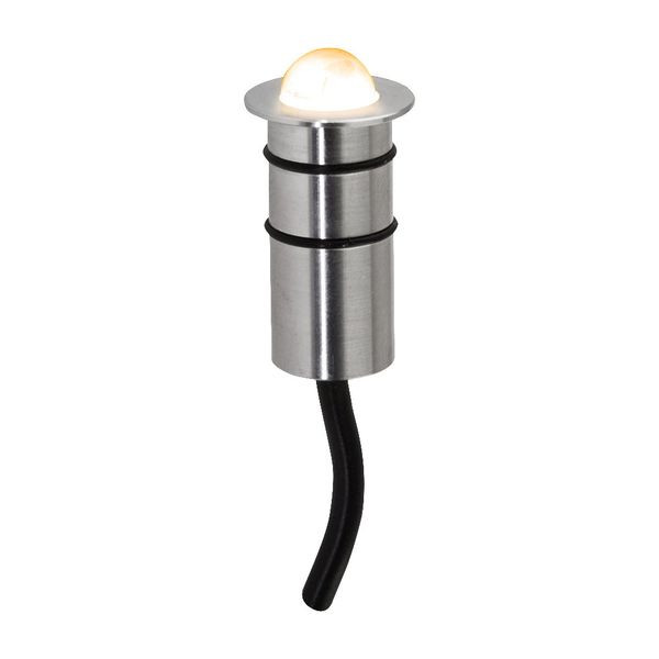 Kleiner Lichtpunkt für vielfältige Anwendungen im Innen- und Außenbereich. Auf Grund der MM-Kennzeichnung kann dieser sogar im Möbelbau verwendet werden. Extrem geringe Leistungsaufnahme und trotzdem genug Leuchtkraft um optische Akzente zu setzten, wie z. B. Seitenwangen von Treppen, im Terrassenboden und vieles mehr. Dank der optischen Linse wird die Lichtausbeute nochmals deutlich verstärkt. Der Lichtpunkt ist komplett aus Edelstahl gefertigt und besitzt eine 5m lange Anschlussleitung mit freien Aderenden. Die Art der Dimmung ist abhängig vom verwendeten Netzgerät.