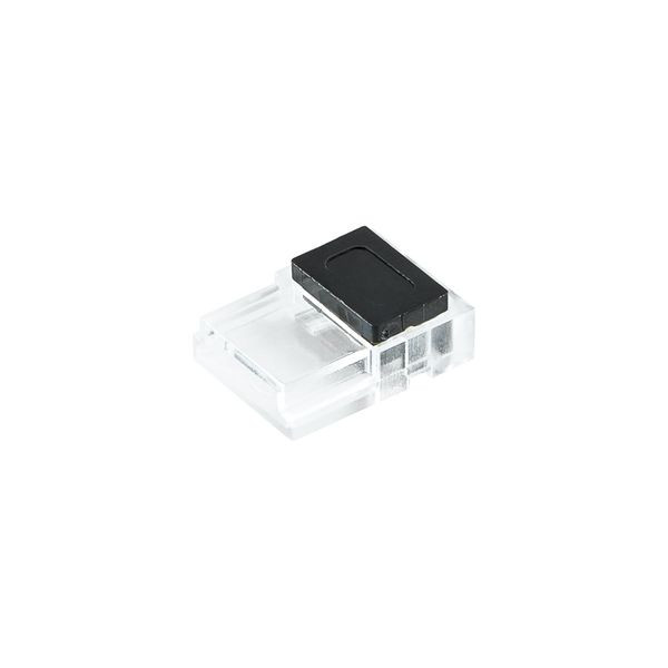 Mit dem Anschlussverbinder kann die Einspeisung am LED-Strip ohne Löten angebracht werden. Dank der flachen und schmalen Bauform kann der Verbinder auch in Alu-Profilen verwendet werden. Sowohl die Anschlussleitung, als auch der LED-Strip werden in den Verbinder eingeschoben und dieser anschließend geschlossen. Bauartbedingt kann der Verbinder jedoch nur einmal geschlossen werden. Der Verbinder ist geeignet für Unicolor LED-Strips mit einer Platinenbreite von 10mm, einer Platinendicke von 0,25 - 0,35mm und einer maximalen Chip-Bestückung von 120 LED pro Meter. Die maximale Belastbarkeit beträgt 36V und 5A. Geeignet für flexible Kabel mit einem Querschnitt von maximal 0,5mm². Maße: LxBxH: 15,5 x 11,5 x 4,5mm.