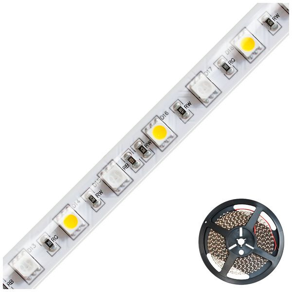 Kürzbarer und flexibler RGBW LED-Strip mit hochleistungs LED-Chips. Gegenüber einfachen RGB-Strips, sind hier zusätzlich zu den RGB-Chips auch warmweiße LED-Chips auf dem Strip verbaut. Die auf diesem Strip verbauten superbright LED-Chips erreichen im Vergleich zu herkömmlichen LED-Chips eine deutlich höhere Lichtausbeute bei gleicher Leistungsaufnahme, bzw. vergleichbare Lichtausbeute bei geringerer Leistungsaufnahme. Die RGB- und WW-LED-chips lassen sich wahlweise zusammen oder separat zu- und abschalten. Dadurch sind die Strips perfekt geeignet, um anspruchsvolle Beleuchtungsszenarien umzusetzen. Ganz egal, ob Ambientebeleuchtung, Hauptbeleuchtung, oder eine Kombination aus beidem, z. B. in Wohnzimmer, Schlafzimmer Flur, oder vieles mehr. Der Phantasie sind nahezu keine Grenzen gesetzt. Wichtig: Um ein überhitzen des Strips zu vermeiden, darf dieser nur auf wärmeleitenden Untergründen verbaut werden, vorzugsweise in Aluminiumprofilen. Die für den Strip benötigten Steuerungen sind separat erhältlich. Die warmweißen LED-Chips haben eine Farbtemperatur von 3000K. Die technischen Angaben sind Maximalwerte und werden nur bei voller Leistung erreicht. Der Strip ist außerdem UV-beständig. Die Lichtausbeute beträgt bei RGB max. 196lm und bei Warmweiß 600lm pro Meter.
