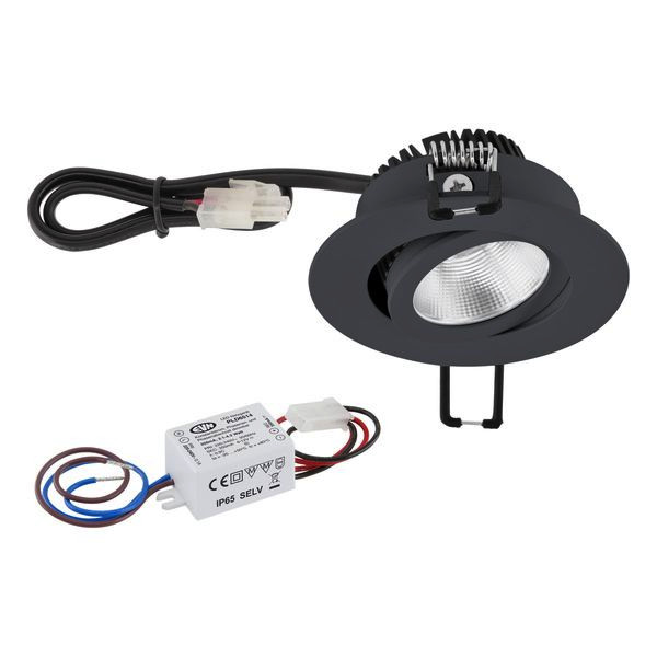Mit der COB-LED Deckeneinbauleuchte lassen sich vielfältige Anwendungen im Innenbereich, wie z. B. Effektbeleuchtung, Raumbeleuchtung, Akzentuierte Beleuchtung und vieles mehr realisieren. Da außerdem die MM-Kennzeichnung gegeben ist, lässt sich diese sogar im Möbelbau verwenden. Zusätzliche Kosten für Leuchtmittel entfallen bei dieser Leuchte, da die Leistung von einem fest verbauten LED-Chip geliefert wird. Da im Lieferumfang das Netzgerät bereits enthalten ist, fallen auch hierfür keine zusätzlichen Kosten an. Der Schwenkwinkel beträgt 20°, Gehäusefarbe ähnlich RAL7016.