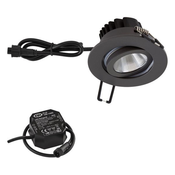 Mit der COB-LED Deckeneinbauleuchte lassen sich vielfältige Anwendungen im Innenbereich, wie z. B. Effektbeleuchtung, Raumbeleuchtung, Akzentuierte Beleuchtung und vieles mehr realisieren. Beim Einbau in geschlossene Decken erreicht die Leuchte die Schutzart IP65. Aufgrund dessen kann die Leuchte natürlich ebenso für Feuchtraum-Anwendungen und im Außenbereich eingesetzt werden. Zusätzliche Kosten für Leuchtmittel entfallen bei dieser Leuchte, da die Leistung von einem fest verbauten LED-Chip geliefert wird. Da im Lieferumfang das Netzgerät bereits enthalten ist, fallen auch hierfür keine zusätzlichen Kosten an. Der Schwenkwinkel beträgt 20°, Gehäusefarbe ähnlich RAL7016. tc: 75°C.