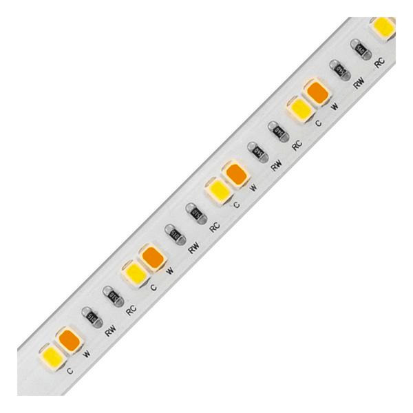 Der LED-Strip kann in jeder Wunschlänge (Angabe in Meter), bis maximal 10m, unter Beachtung des Teilungsmaßes von 100mm konfektioniert werden. Die maximale Einspeiselänge bei einseitiger Einspeisung beträgt 5m. Der konfektionierte Strip wird standardmäßig einseitig mit einer 0,5m langen Anschlussleitung (Kabelquerschnitt: 0,5mm²) ausgeliefert. Wichtig: Um ein Überhitzen des Strips zu vermeiden, darf dieser nur auf wärmeleitenden Untergründen verbaut werden, vorzugsweise auf bzw. in Aluminiumprofilen. Die Lichtausbeute beträgt pro Meter max. 731lm bei 6500K und 565lm bei 2500K.
