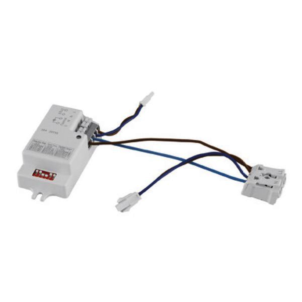 Sensor mit Steckverbindern zum Nachrüsten für die Artikel WE3018xx25 und WR3018xx25. Am Bewegungsmelder können mittels Dipschalter folgende Einsellungen vorgenommen werden: Erfassungsreichweite: 100% (12m), 75% (9m), 50% (6m) oder 10% (1,20m). Schaltdauer (Leuchtdauer): 5 Sekunden, 90 Sekunden, 5 Minuten oder 15 Minuten. Funktion: Dauerhaft aktiv, unter 2 Lux, 10 Lux oder 50 Lux. Außerdem besteht die Möglichkeit mehrere Leuchten, bis max. 200W, untereinander zu verbinden, wobei dann jede Leuchte als Schaltstelle dient und alle anderen verbundenen Leuchten mit einschaltet. Arbeitstemperaturbereich -20°C bis + 50°C.
