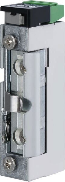 Modell mit Rückmeldekontakt als potentialfreier Wechselkontakt. Dieser wird von der Schlossfalle betätigt. Zusätzlich hat das Modell die Möglichkeit einer mechanischen Entriegelung (Tagesentriegelung) der Türöffnerfalle.