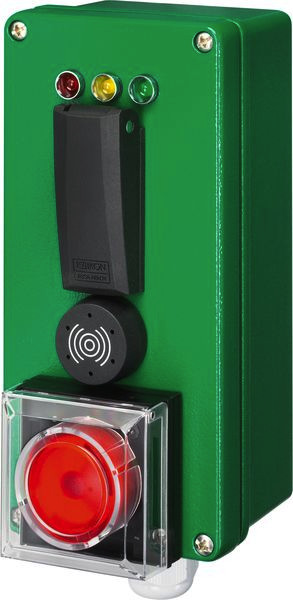 Als Bedienteil in Fluchtrichtung in Verbindung mit einer externen Fluchttürsteuerung, geeignet für den Einsatz im Außenbereich.