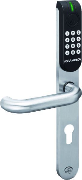 Elektronischer Türcodebeschlag ESA501, U-Form-Drücker, Zugangsfunktion durch Tastatur (PIN-Code), vier- oder sechsstellige Tür-Codes, bis zu 99 Benutzercodes, keine Verkabelung nötig, Stromversorgung über eine 3 V-Batterie, vielseitige Freigabeoptionen: Office- / Boten- / Hotelfunktion, 8 mm Vierkant; 40-50 mm Türblatt, 72 mm Entfernung, Version Premium = Version mit höherer Sicherheit bis Kategorie 3 (EN 1906) mit Zulassungen für Feuerschutztüren (DIN18273),Fluchtwege (EN179) und Sicherheitsanwendungen