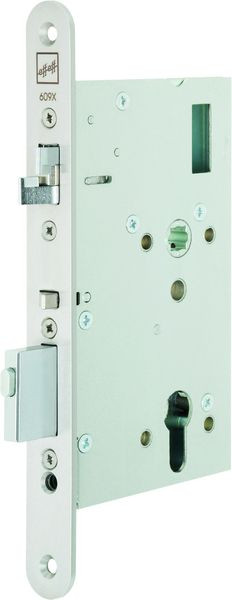 MEDIATOR® Schloss, Vollblatt-Version, Das MEDIATOR® Schloss in der Vollblatt-Version gibt es in verschiedenen Dornmaßen und mit umfangreichem Zubehör., Selbstverriegelung: Riegel und Falle sind gesperrt, dadurch höhere Sicherheit, Mechanische Ablaufsteuerung zwischen Kreuz- und Steuerfalle, Integrierte Panikfunktion über den Innendrücker, Wechselfunktion zur Entriegelung über Schlüssel von außen, Die MEDIATOR® Schlösser haben eine durchgehende Drückernuss und benötigen somit einen Wechselbeschlag (innen Drücker oder Panikgriffstange, außen Knauf oder Griffstange).