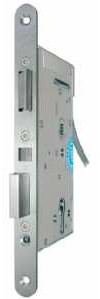 Das Elektro-Sicherheitsschloss Modell 809 ist ein selbstverriegelndes Panikschloss mit geteilter Drückernuss und steuerbarem Außendrücker.