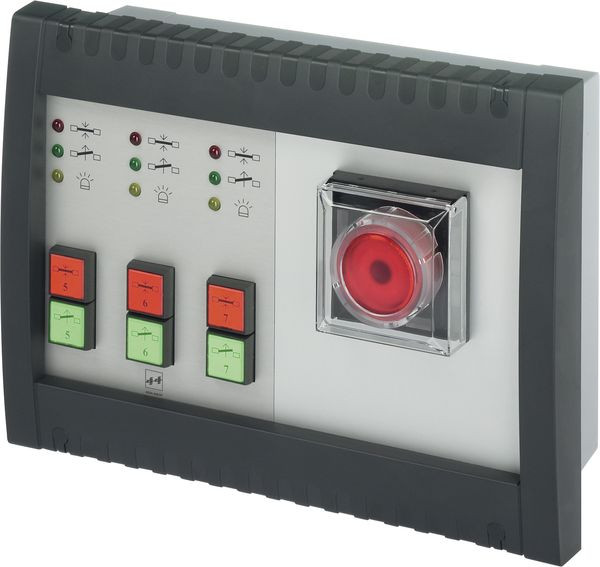 Zur Erweiterung der 925 Tableau - Modul - Basiseinheit mit einer NOT-Taste zur zentralen Freischaltung von Fluchttürabsicherungen ohne örtliche Nottaste über eine Sicherheitsrelaisschaltung und zur zentralen Bedienung und Anzeige von weiteren 3 Türen.|Mit nicht splitternder Notschalterschutzhaube.|Mit Verbindungsleitung 50 cm.