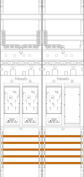 Zählerfeld 2-feldrig, 3-Zählerplätze eHZ, 1-Reserveplatz, Höhe 1050 mm, Breite 500 mm, Sammelschienensystem 5-polig