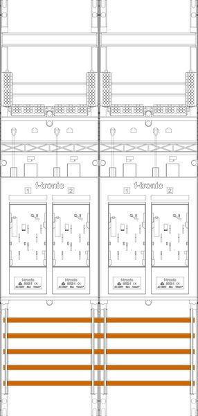 Zählerfeld 2-feldrig, 4-Zählerplätze eHZ mit Datenschnittstelle, Höhe 1050 mm, Breite 500 mm, Sammelschienensystem 5-polig