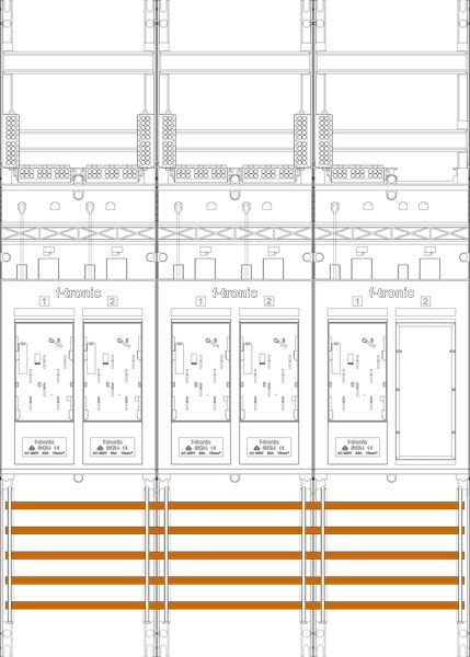 Zählerfeld 3-feldrig, 5-Zählerplätze eHZ mit Datenschnittstelle, 1-Reserveplatz, Höhe 1050 mm, Breite 750 mm, Sammelschienensystem 5-polig