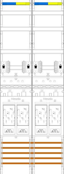 Zählerfeld 2-feldrig, 4-Zählerplätze eHZ, Höhe 1350 mm, Breite 500 mm, Sammelschienensystem 5-polig, mit Hauptschalter sperrbar