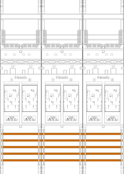 Zählerfeld 3-feldrig, 6-Zählerplätze eHZ, Höhe 1050 mm, Breite 750 mm, Sammelschienensystem 5-polig