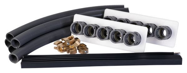 Sammelschienenverbinder, Schrank-Schrank-Verbindung über Eck, 5-polig, CU 12x5mm, Nennstrom 250A.