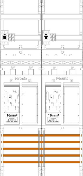 Zählerfeld 2-feldrig, 2-Zählerplätze eHZ mit 16mm² Verdrahtung, 2-Reserveplätze, Höhe 1050 mm, Breite 500 mm, Sammelschienensystem 5-polig, mit Hauptschalter sperrbar
