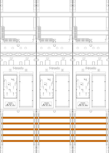 Zählerfeld 3-feldrig, 3-Zählerplätze eHZ mit 16mm² Verdrahtung, 3-Reserveplätze, Höhe 1050 mm, Breite 750 mm, Sammelschienensystem 5-polig