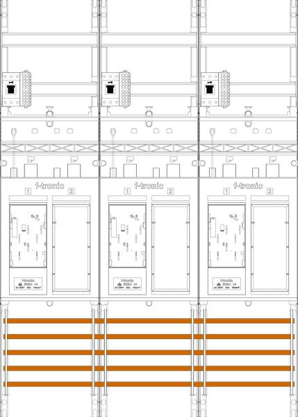 Zählerfeld 3-feldrig, 3-Zählerplätze eHZ mit Datenschnittstelle, 3-Reserveplätze, Höhe 1050 mm, Breite 750 mm, Sammelschienensystem 5-polig