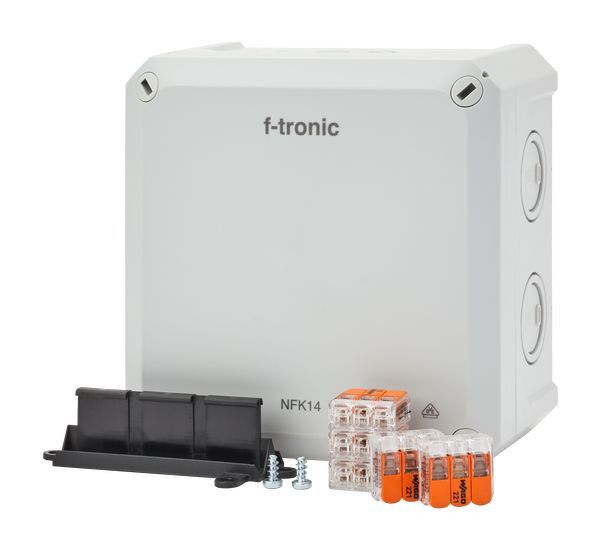 | Kurzbeschreibung | FR-Abzweigkasten 140x140x81mm, Klemmen 6qmm, Klemmenhalter, IP66, PS, grau, NFK14gr-K6 |