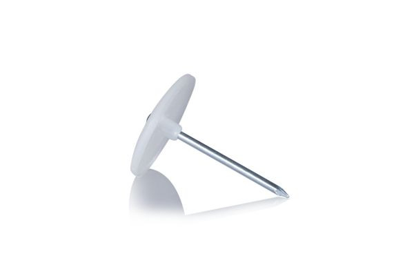 Nagelscheibe mit Stahlnagel. Durchmesser 28mm. Nagel: 2 x50 mm. Farbe natur.