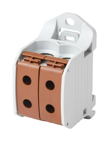 Reihenklemme 50mm², 1polig, 4 Anschlüsse, Farbe braun, Kupfer/Aluminium Variante, RKA50-1-4br