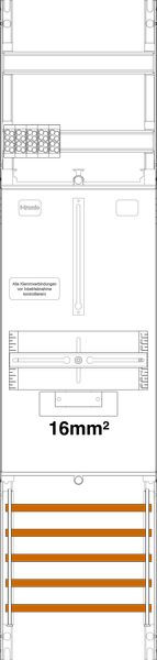 Zählerfeld 1-feldrig, 1-Zählerplatz 3.HZ mit 16mm² Verdrahtung, Höhe 1050mm, Breite 250mm, Sammelschienensystem 5-polig