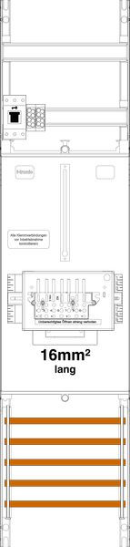 Zählerfeld 1-feldrig, Höhe 1050mm, Breite 250mm, 1-Zählerplatz 3.HZ 16mm² lange Kabel, Sammelschienensystem 5-polig, mit Zählersteckklemmen-Set und Hauptschalter sperrbar