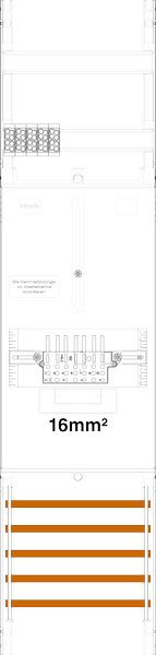 Zählerfeld 1-feldrig, 1-Zählerplatz 3.HZ mit 16mm² Verdrahtung, Höhe 1050 mm, Breite 250 mm, Sammelschienensystem 5-polig, mit Zählersteckklemmen und Stiften