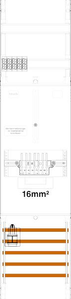 Zählerfeld 1-feldrig, 1-Zählerplatz 3.HZ mit 16mm² Verdrahtung, Höhe 1050 mm, Breite 250 mm, Sammelschienensystem 5-polig, mit Zählersteckklemmen und Stiften