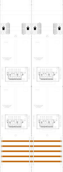 Zählerfeld 2-feldrig, 4-Zählerplätze 3.HZ, Höhe 1350 mm, Breite 500 mm, Sammelschienensystem 5-polig, mit Hauptschalter sperrbar