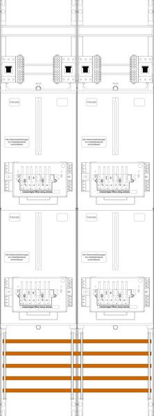 Zählerfeld 2-feldrig, 4-Zählerplätze 3.HZ, Höhe 1350mm, Breite 500mm, Sammelschienensystem 5-polig, mit Zählersteckklemmen-Set und Hauptschalter plombierbar
