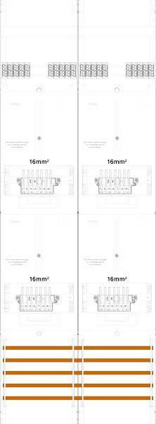 Zählerfeld 2-feldrig, 4-Zählerplätze 3.HZ 16mm² Verdrahtung, Höhe 1350 mm, Breite 250 mm,Sammelschienensystem 5-polig, mit Zählersteckklemme und Stiften