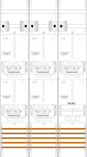 | Kurzbeschreibung | Zählerfeld Z216ZR6-ZSK-HSP, 3-feldrig, H=1350mm, 5-3.HZ, 5 ZSK-Set, 5 HSP, 1 TRE |