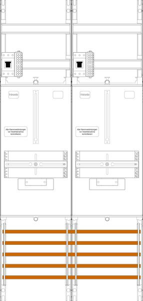 Zählerfeld 2-feldrig, 2-Zählerplatz 3.HZ, Höhe 1050 mm, Breite 500 mm, Sammelschienensystem 5-polig, mit Hauptschalter plombierbar