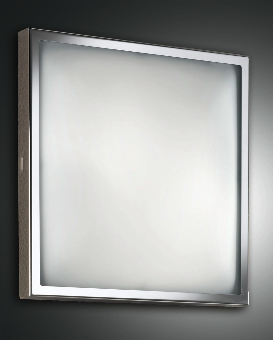 Glas weiß satiniert, Metallrahmen, 46 Watt ECO. Farbe: nickel, Maße (L x B x H): 40 x 40 x 12 cm, für LM 3 x E27