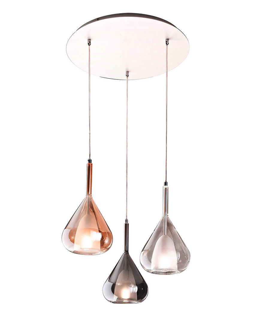 | Kurzbeschreibung | Lila, Pendelleuchte, E27, 3X40W , Metall weiss und drei Borsilikatgläser in verschiedenen Farben, Amber, grau transparent und transparent |