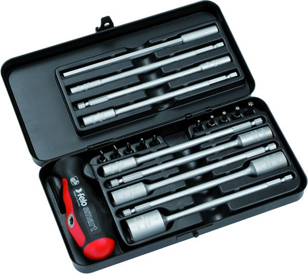 SMART Box Engineer INCH Version Schraubendreher und T-Griff in einem kombinierter Schraubendreher und T-Griff, 8 Steckschlüssel (Zoll), Bithalter und 10 Bits, mit Aufnahme für das komplette 1/4 Zoll Normprogramm (Bits etc.), ergonomischer ausgereifter 2-Komponenten-Griff mit angenehm griffigem Weichmantel für optimale Kraftübertragung und höchsten Arbeitskomfort, Griffkopf mit Abrollschutz, 15 Jahre Garantie, GS-geprüfte Sicherheit, Inhalt: Schlitz (3,5 x 0,6, 5,0 x 0,8), Kreuzschlitz (PZ 1, PZ 2, PH 1, PH 2), innensechsrund (15, 20, 25, 30), 8 Sechskant (7/32 Zoll - 9/16 Zoll), Adapter 150 mm, Griff