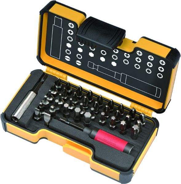 38-teiliges Bit-Sortiment in der exklusiven und stabilen, spritzwassergeschützten mini StrongBox, hochwertig und langlebig Inhalt: 35 Bits C6,3 x 25mm, 4,5 x 0,6/ 6,5 x 1,2 / 3 mm/ 4 mm/ 5 mm/ 6 mm/ PH0/ 2x PH1/ 4x PH2/ 2x PH3, PZ1/ PZ2/ PZ3/ TX 5/ 6/ 7/ 8/ 10/ 15/ 20/ 25/ 30/ 40/ SQ 1/ SQ 2 1 x Bitholder E6,3 x 58 mm 1 x FeloStar E6,3 x 70 mm