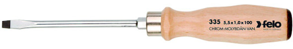 Serie 330 Schlitz-Schraubendreher Lederkappe als Splitterschutz, durchgehende Klinge, Griff aus besonderem Buche- Hartholz, ergonomische, ballige Griffkontur, Griffkopf mit Abrollschutz, angeschmiedeter Sechskant als Schlüsselhilfe, Klingen aus spezieller Chrom- Molybdän- Vanadium Legierung, beste Lesitungsdaten mit bis zu 100% über DIN-Werten, Mattverchromt mit Black-Tip, 15 Jahre Garantie, GS geprüfte Sicherheit